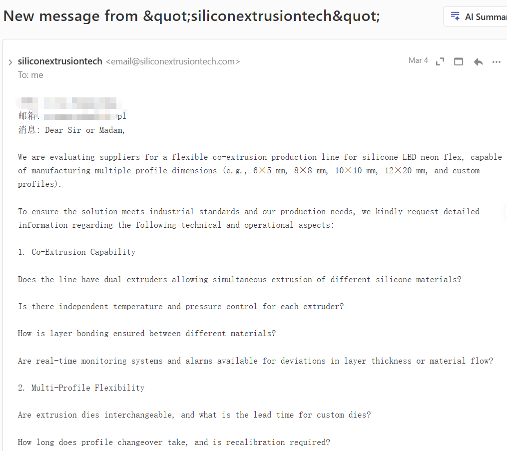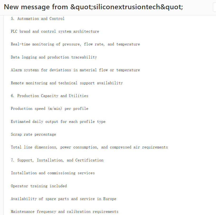 I am Eason. This morning, I opened my email and found a very detailed inquiry. The customer is evaluating suppliers for a flexible silicone co-extrusion production line. They want to know everything. They asked about profile dimensions like 6×5 mm and 12×20 mm. They asked about dual extruders, layer bonding, and CE certification for the European market. This is not a basic buyer. This is a professional who knows the hardware. When I saw these questions, I smiled. I love it when a customer challenges me with deep technical details. It reminds me of when I play basketball with a team that is better than mine. I have to play my best. I have to be precise.